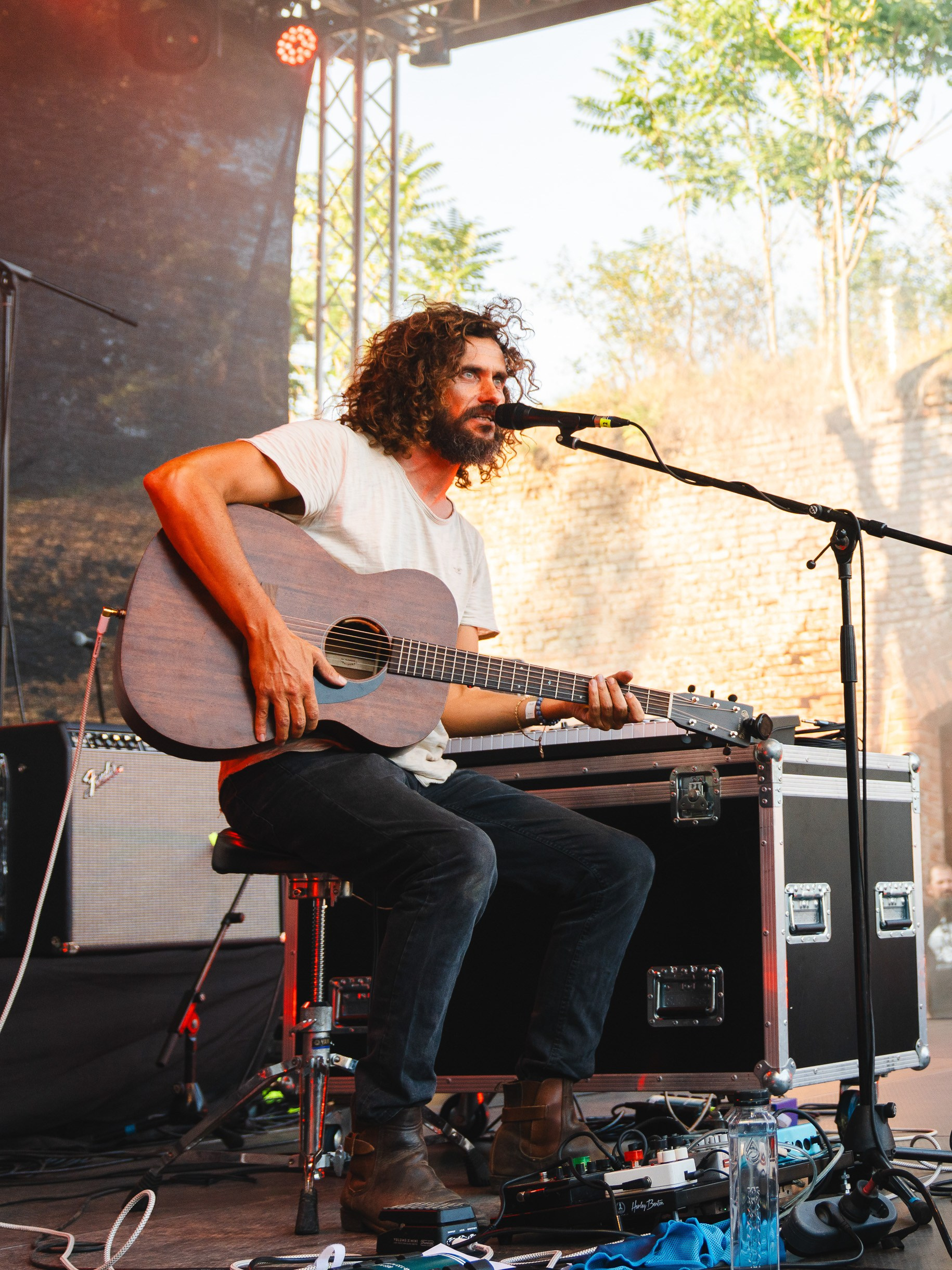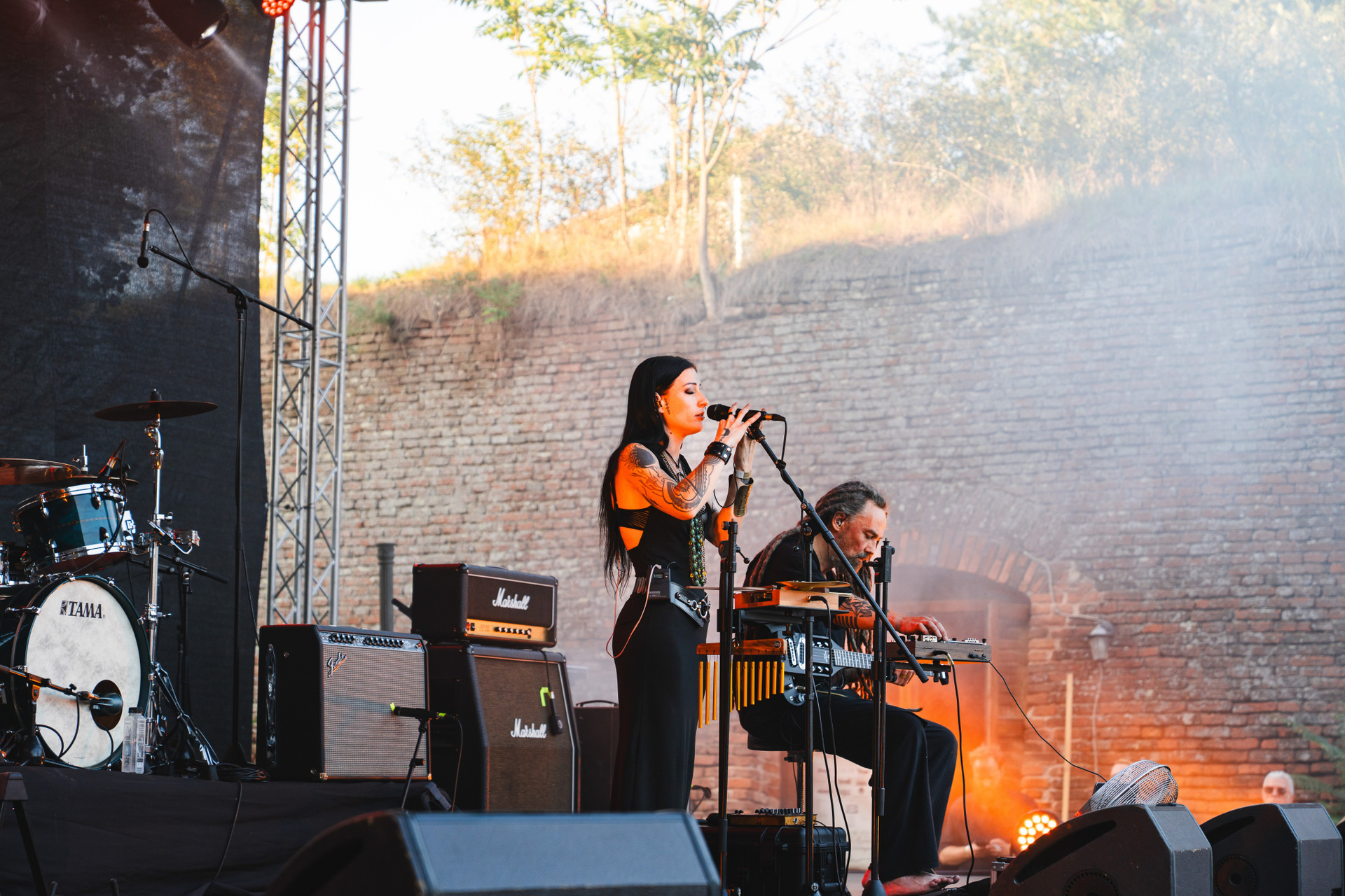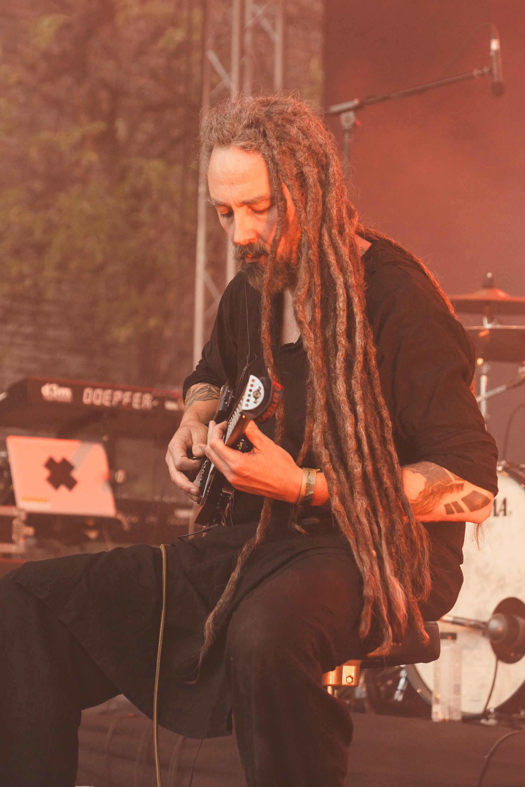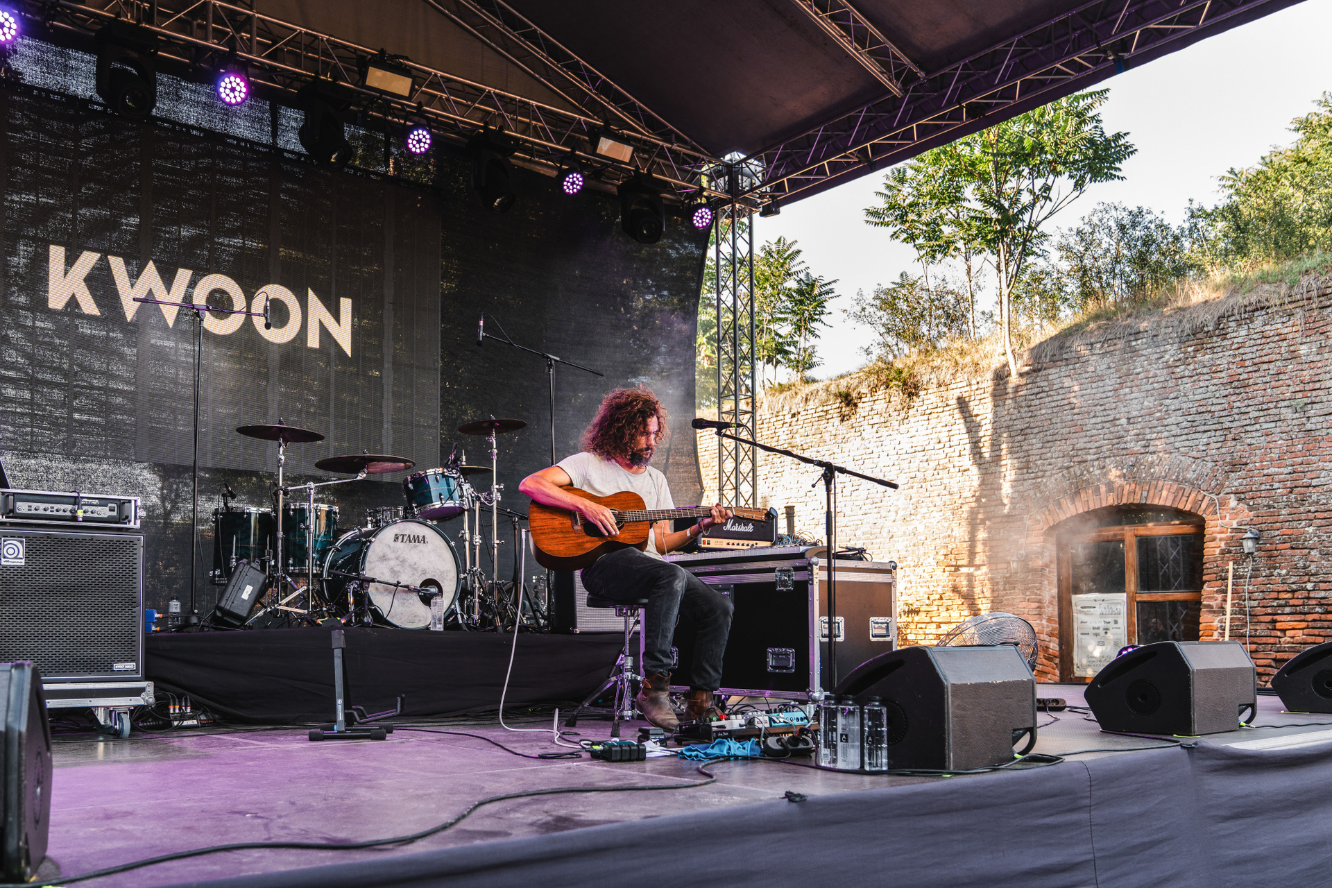 Am fost la Festivalul DBE editia 11, pentru Kwoon. Muzica lor imi zgandare sufletul in cele mai mici cotloane. Melodia mea preferata este “Bird” insa sunt multe melodii care imi plac enorm: Life, Siren’s Call, Interstellar, Great Escape… prea multe ca sa le enumar aici. Le-am tot urmarit pagina ca sa vad cand ii prind si eu live, insa nimic, pentru ca si ei posteaza la fel de “des” ca mine si ma trezesc cu trei zile inainte de festival, ca ei vin in Romania. In Alba Iulia! Am lasat totul balta, am luat BlaBla Car si am plecat! 5 ore pe drum. Festivalul a avut loc la cetatea Alba Iulia, absolut superba. Ma asteptam sa fie ceva mare, insa nu. O terasa cu mese, o zona de stat in picioare, o scena mica iar in spatele scenei corturi. Foarte friendly. Mi-a placut locul. Sandy (Kwoon) a cantat solo acoustic dar m-am bucurat de fiecare minutel. Putin dezamagita ca mi s-a parut ca a cantat prea puțin si ca nu a cântat cu toată formatia. Mi se mai intampla cand imi place prea mult concertul. Se termina prea repede. Macar am reusit sa fac poze cu el, pentru ca se plimba omu meu cu o bere Ursus in mana, printre noi si socializa. Si-a pus berea jos intre picioare, ca sa faca poza cu mine. Si nu mi-a placut cum a iesit cea cu telefonul, pentru ca prea zambeam cu gura pana la urechi asa ca vazand ca e prietenos am zis sa facem si cu aparatul foto, ca deh… e mai calitativa. A acceptat iar fara probleme 😁 Fain om! Muzica de dupa Kwoon a fost mult prea gothica pentru mine, dar a fost o experienta interesanta. Mai jos sunt cateva fotografii de la festival! ❤️🤘